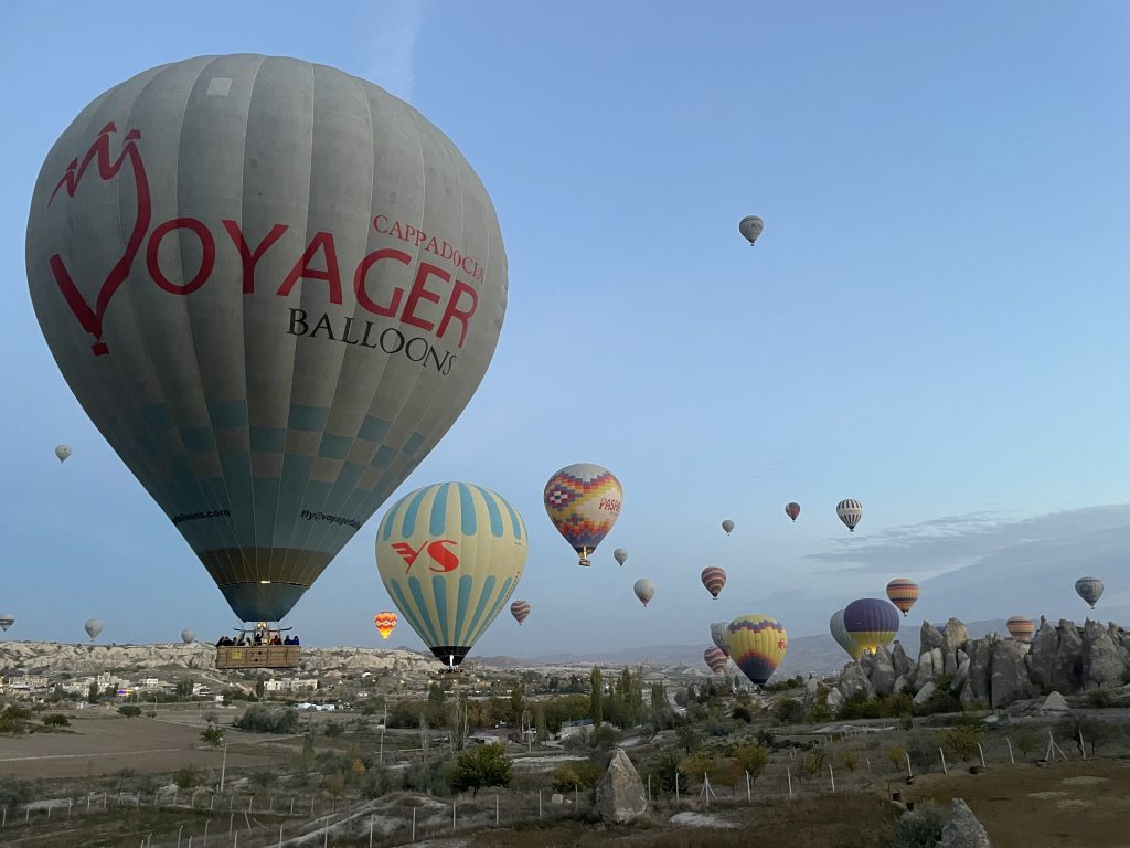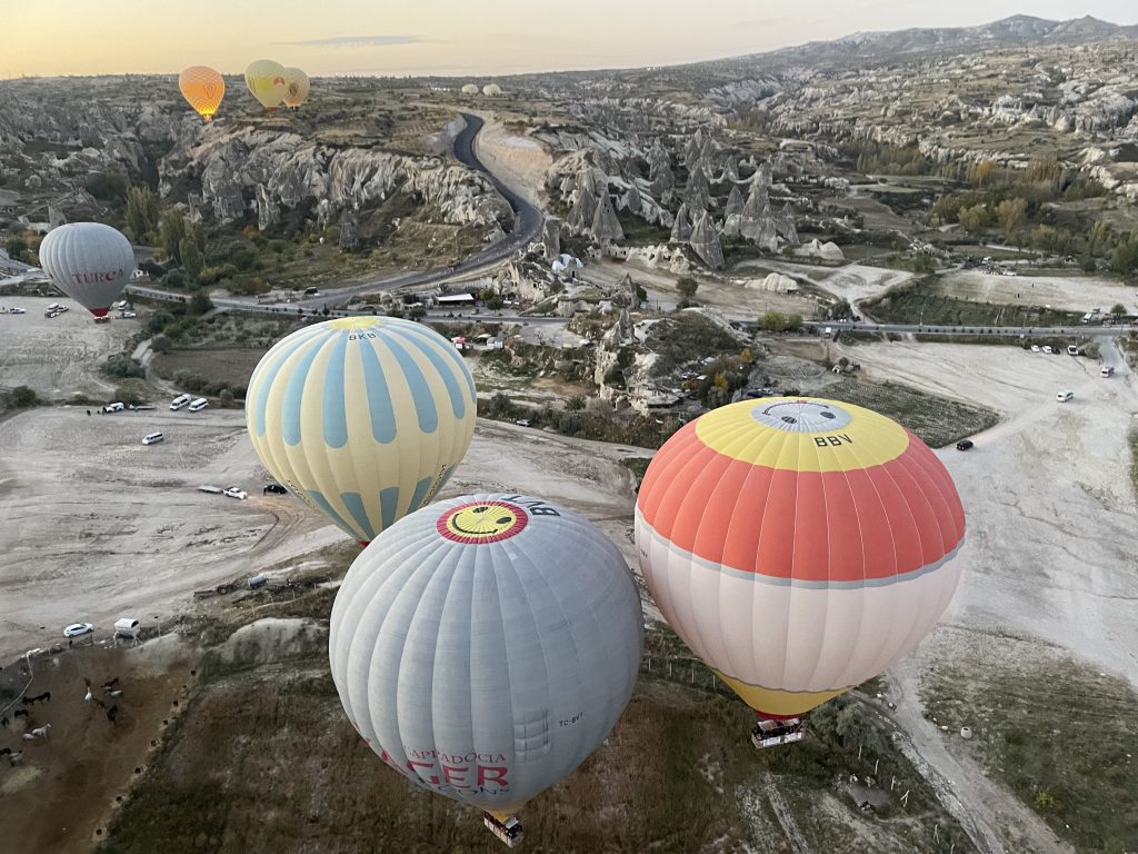 El alba nos deparaba la experiencia más electrizante del viaje: el paseo en globo sobre Capadocia. ¡Uffff! Es difícil ponerlo en palabras. Solo sé que la paz que sentí al despegar junto a unos 100 globos que flotaban sobre las chimeneas de hadas con el despertar del sol mientras los locales aún dormían, fue algo sublime. Era como si ese amanecer solo nos perteneciera a nosotros, los que estábamos más cerca del cielo. En definitiva, es una experiencia que se debe vivir al menos una vez en la vida.